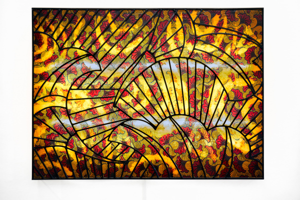 Acier, tissus, résine, teinture, peinture 88x65cm -